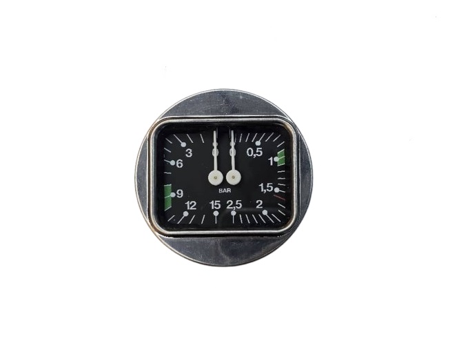مانومتر فشار بخار و پمپ ۲ عقربه – قطر ۶۲، رزوه ۱/۸ مناسب دستگاههای لاسپازیاله و برزیلیا